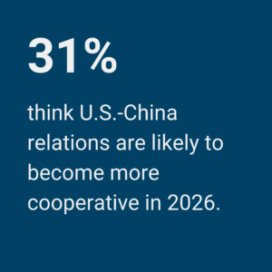 The survey began by taking stock of where the U.S.-China relationship stands at the end of 2025 and asking experts to forecast the overall trajectory of the relationship in 2026.