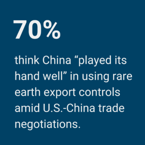 Economics and trade issues dominated U.S.-China relations in 2025. The tit-for-tat trade war showcased the different areas of leverage and vulnerabilities on both sides. The questions in this portion of the survey sought to understand China’s strategy in the trade war, gauge the effectiveness of its approach, and understand China’s limitations.
