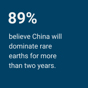 However, reducing reliance on China will take time. In this survey, 52 percent of experts said China may be able to wield its dominance over rare earths for up to five more years (see figure 7). Another 30 percent said China could wield its influence in the industry for more than 10 years, and some felt it could take even longer to break China’s dominance. Only 11 percent of experts said China’s dominance over rare earths and other critical minerals could be ended in the next one to two years.